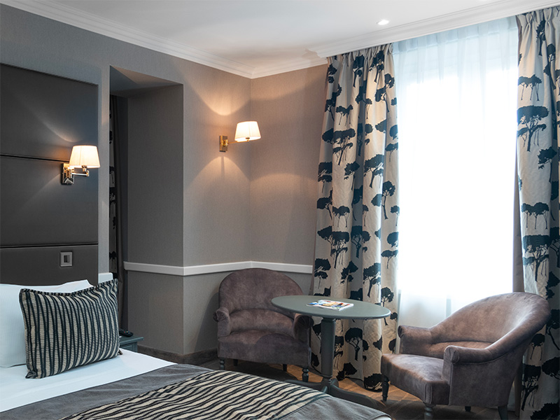 Occupation 2 personnes située côté parc avec tv, wifi, coffre fort, directory. Équipée d’une salle de bain avec baignoire/douchette, lavabo avec double vasque, sèche cheveux, miroir grossissant, WC séparé.
